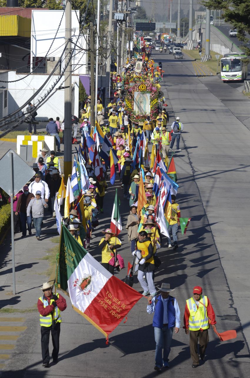 Toluca, Edomex. Alrededor de 20 mil feligreses procedentes del Estado de México partieron de la Catedral de Toluca con rumbo a la Basílica de Guadalupe en la la edición 77 de esta Peregrinación.